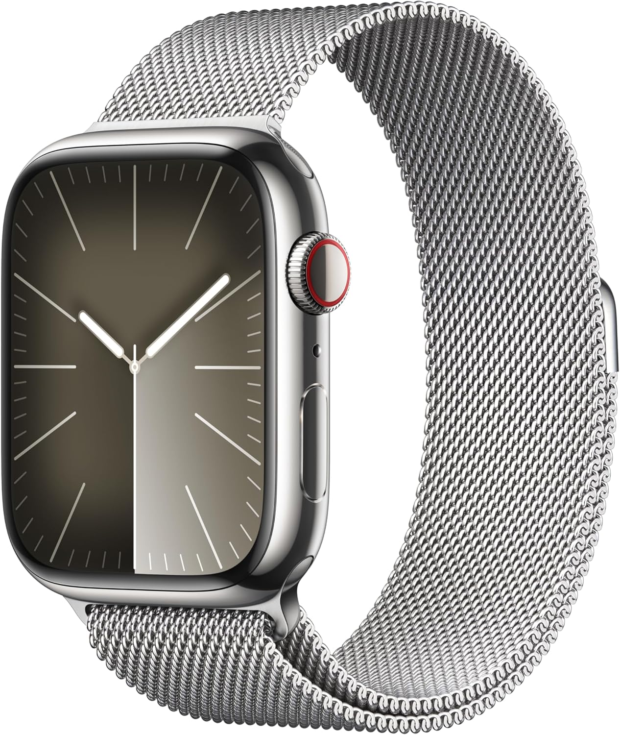 Watch Series 9 [GPS + Cellular 45mm] Smartwatch with Silver Stainless Steel Case with Silver Milanese Loop. Fitness Tracker, Blood Oxygen & ECG Apps, Always-On Retina Display