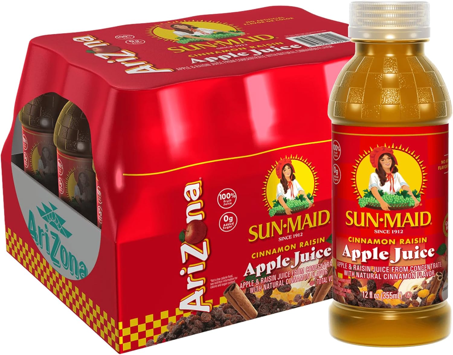 Cinnamon Raisin Apple Juice, Made with Sun-Maid Raisin Juice, 100% Fruit Juice and Natural Flavors with No Added Sugar - 12 Fl Oz (Pack of 12)