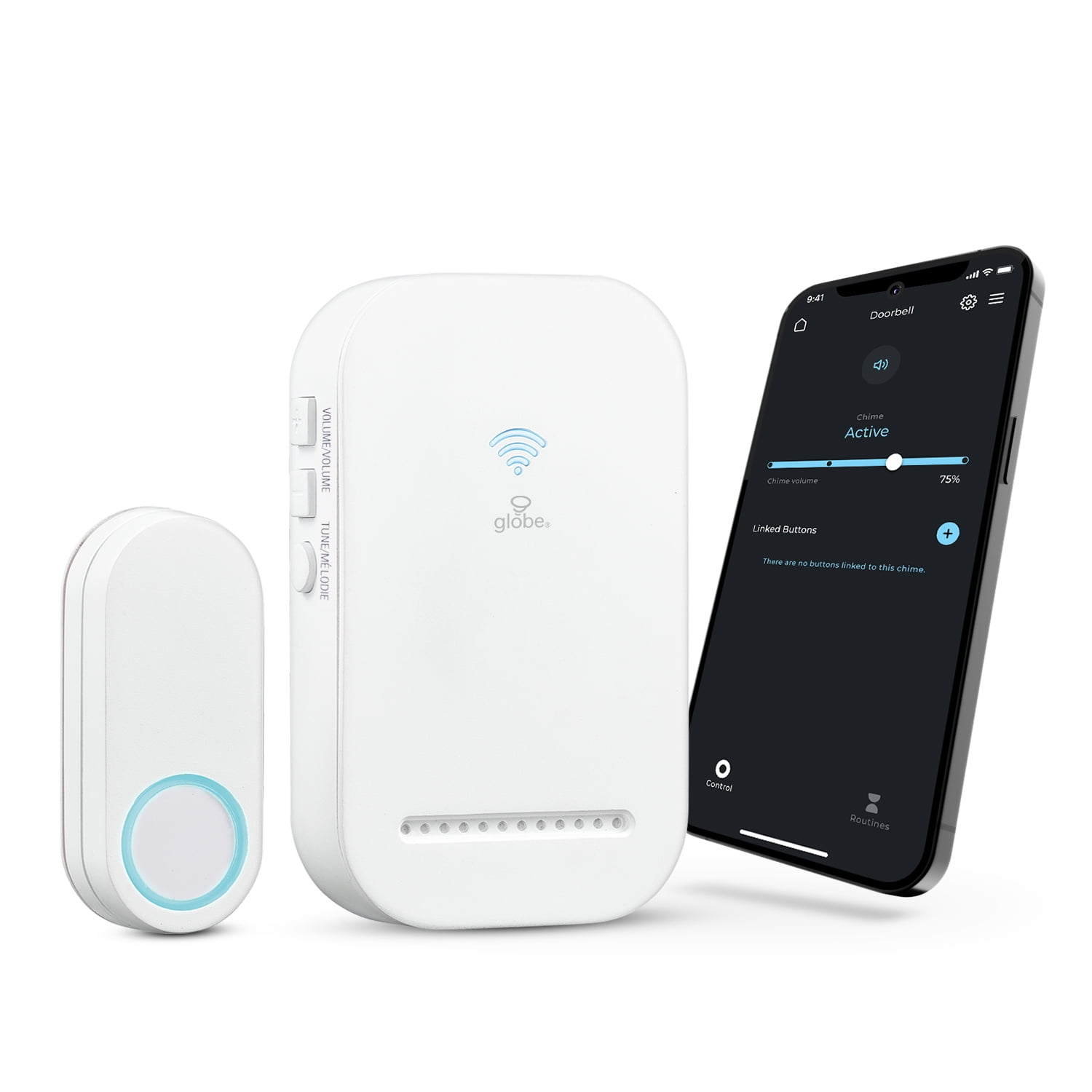 Globe Electric Wi-Fi Smart Wireless Doorbell Chime Kit with Lighted Plug-In Chime and Battery Operated Lighted Doorbell