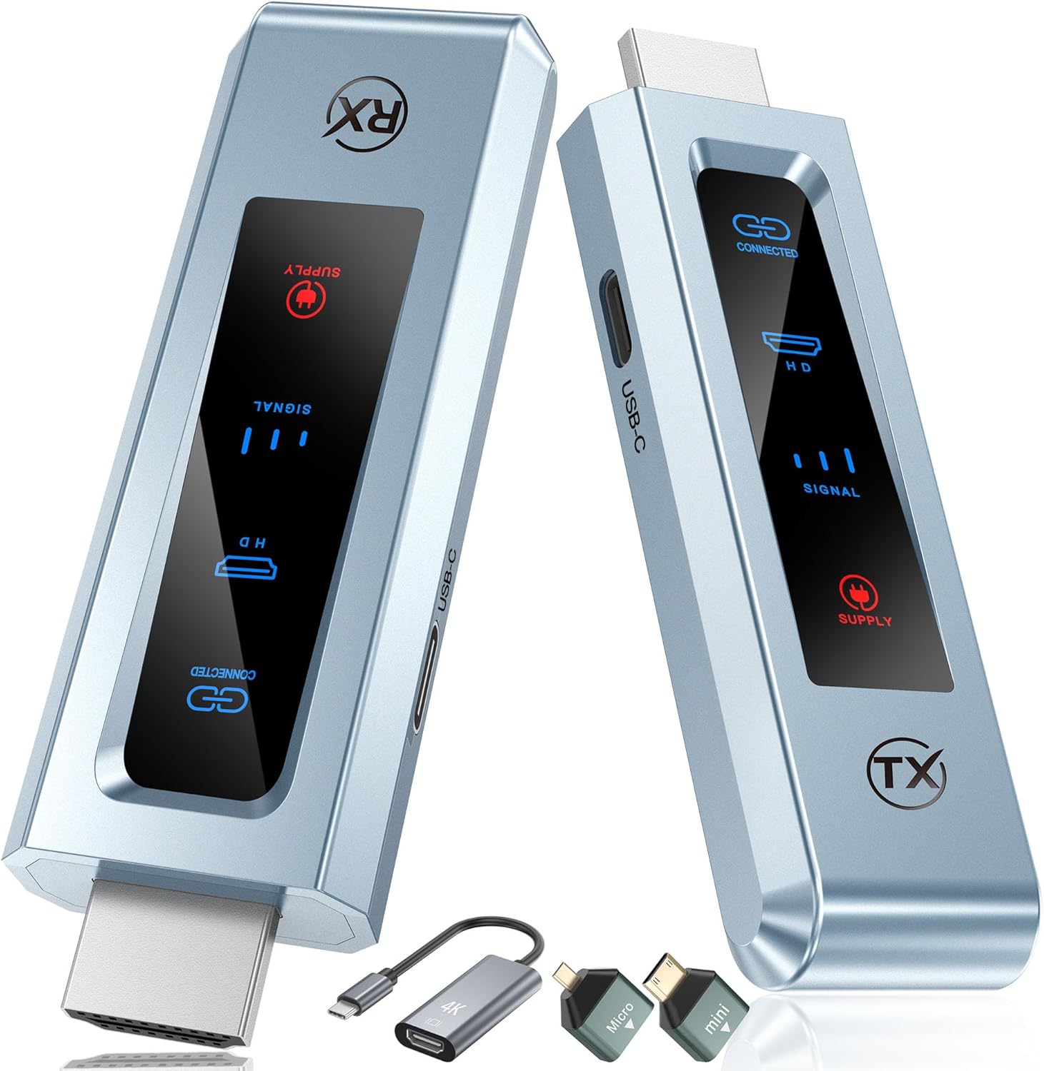 Wireless HDMI Transmitter and Receiver, HD Extender Plug & Play Portable 2.4G/5G with LED Screen Wireless HDMI Kit for Streaming Video and Audio to Monitor from Laptop/PC/TV Box/Projector