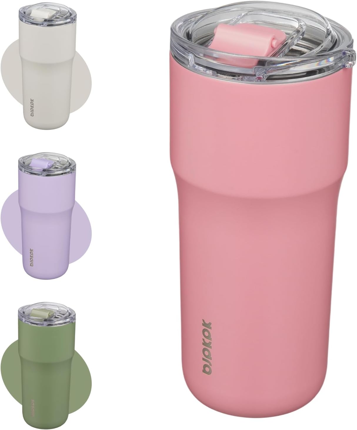 Insulated Tumbler with Lid,24oz Stainless Steel Tumbler,Double Wall Travel Coffee Mug Thermal cup,Keep Drinks Cold and Hot,Pink