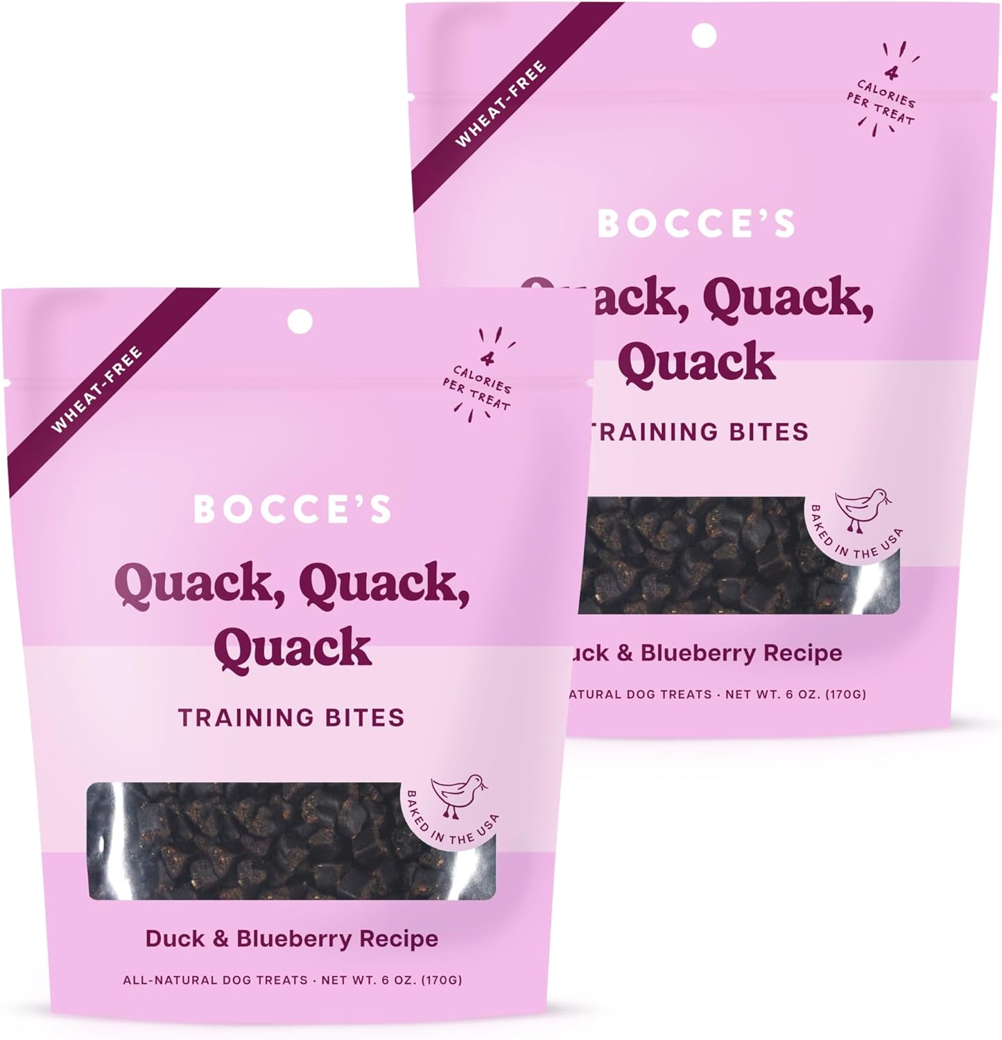 Quack Quack Quack Training Treats for Dogs – Natural, Low-Calorie, Wheat-Free Training Bites Made with Real Ingredients & Baked in The USA – Duck & Blueberry Recipe (2 Pack Bundle)
