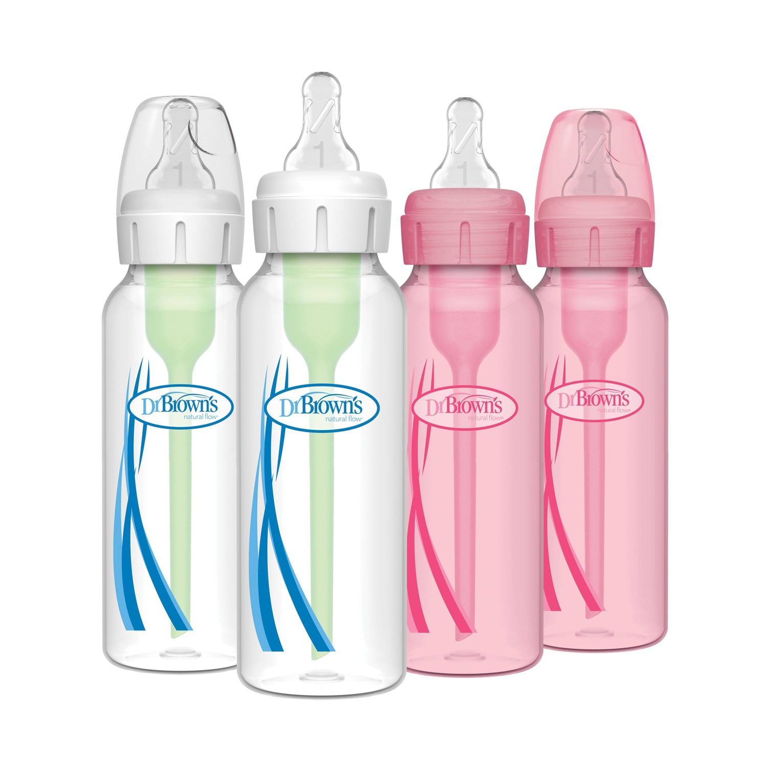 Dr. Brown's 8oz Anti-Colic Options+ Narrow Baby Bottle with Level 1 Slow Flow Nipple - 4pk - 0m+ - Pink & Clear
