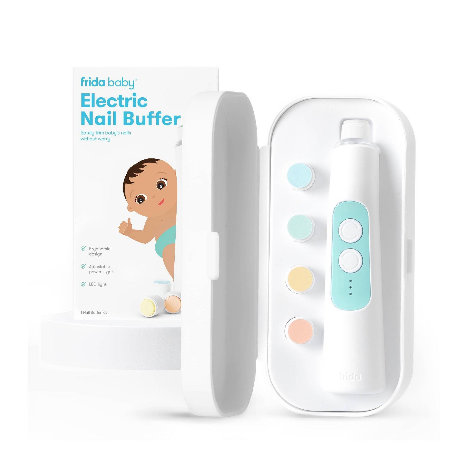 Frida Baby Electric Nail Buffer - Baby Nail File, Nail Clippers + Trimmer Kit - 4 Buffer Pads, LED Light + Case