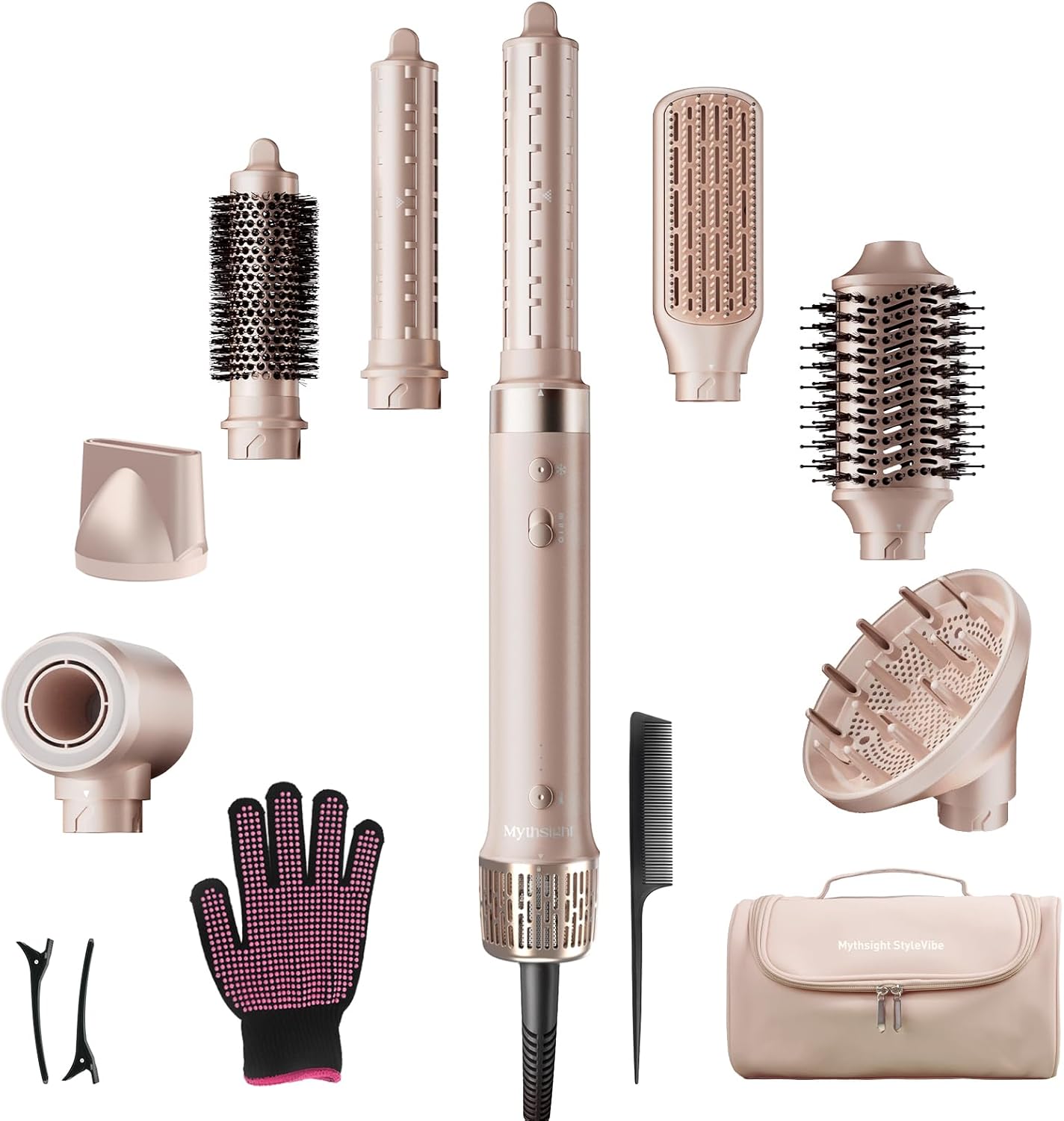 StyleVibe 8-in-1 Air Styler, Hair Dryer & Blow Dryer Brush with Travel Case - Auto Wrap Curls (L/R), Fast Drying, Thermal Round Brush for Smooth Blowouts & Frizz-Free Volume, No Heat Damage