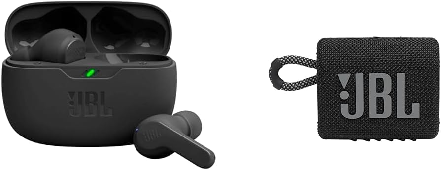 Jbl Vibe Beam Earbuds + JBL Go 3 Portable Speaker Bundle (Black)