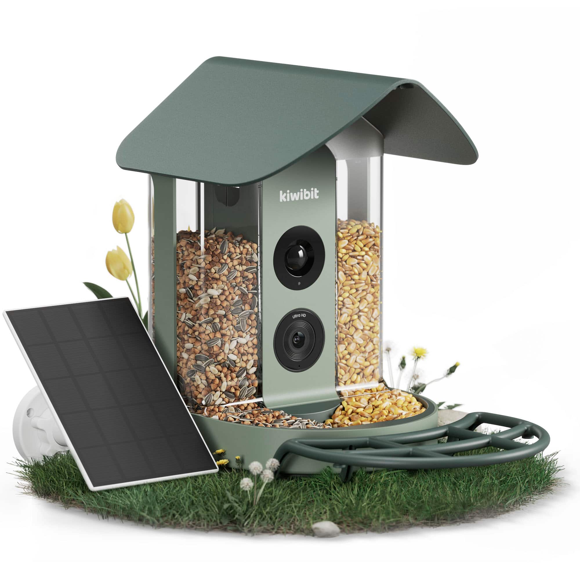 Kiwibit - Beako Smart Bird Feeder 4K Camera Solar Powered, AI Detection, Live Stream, Motion Alerts, Easy Outdoor Setup - Green