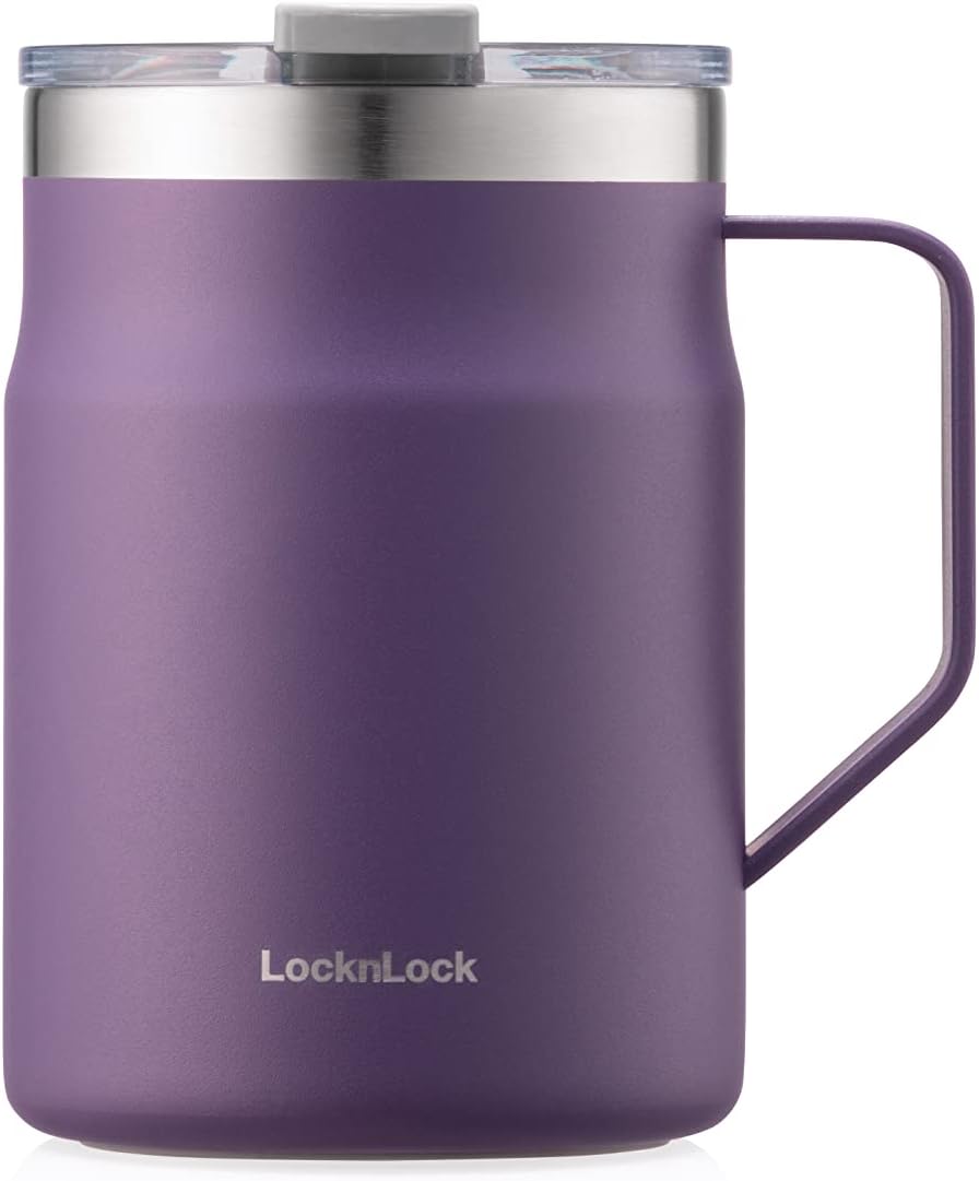 Metro Mug, Premium 18/8 Stainless Steel Metal, Double Wall Insulated, Portable Coffee Cup with Lid and Handle for Hot and Cold Drinks, Purple, 16 oz