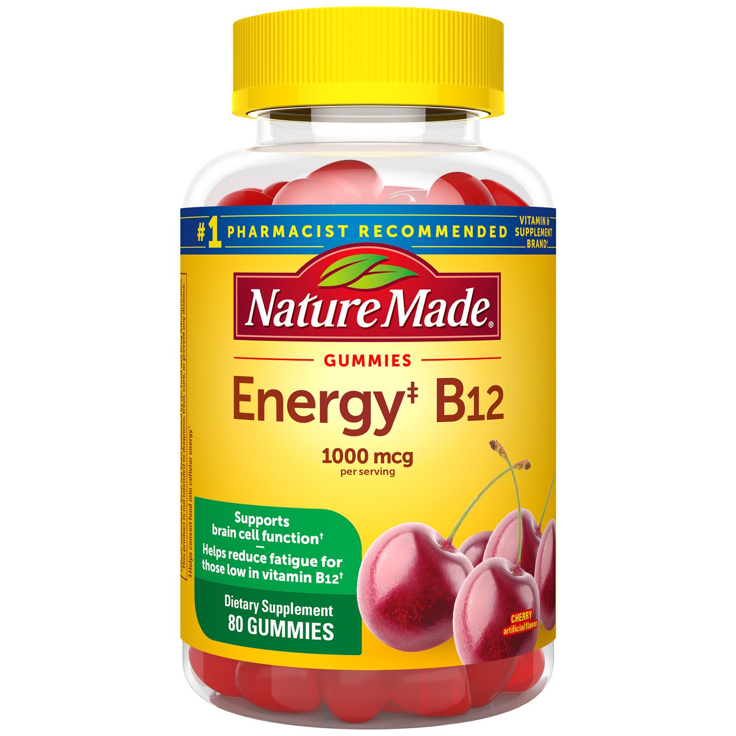 Nature Made Energy Vitamin B12 1000 mcg Gummies - Cherry & Mixed Berry - 80ct: Gluten-Free, No Artificial Flavors