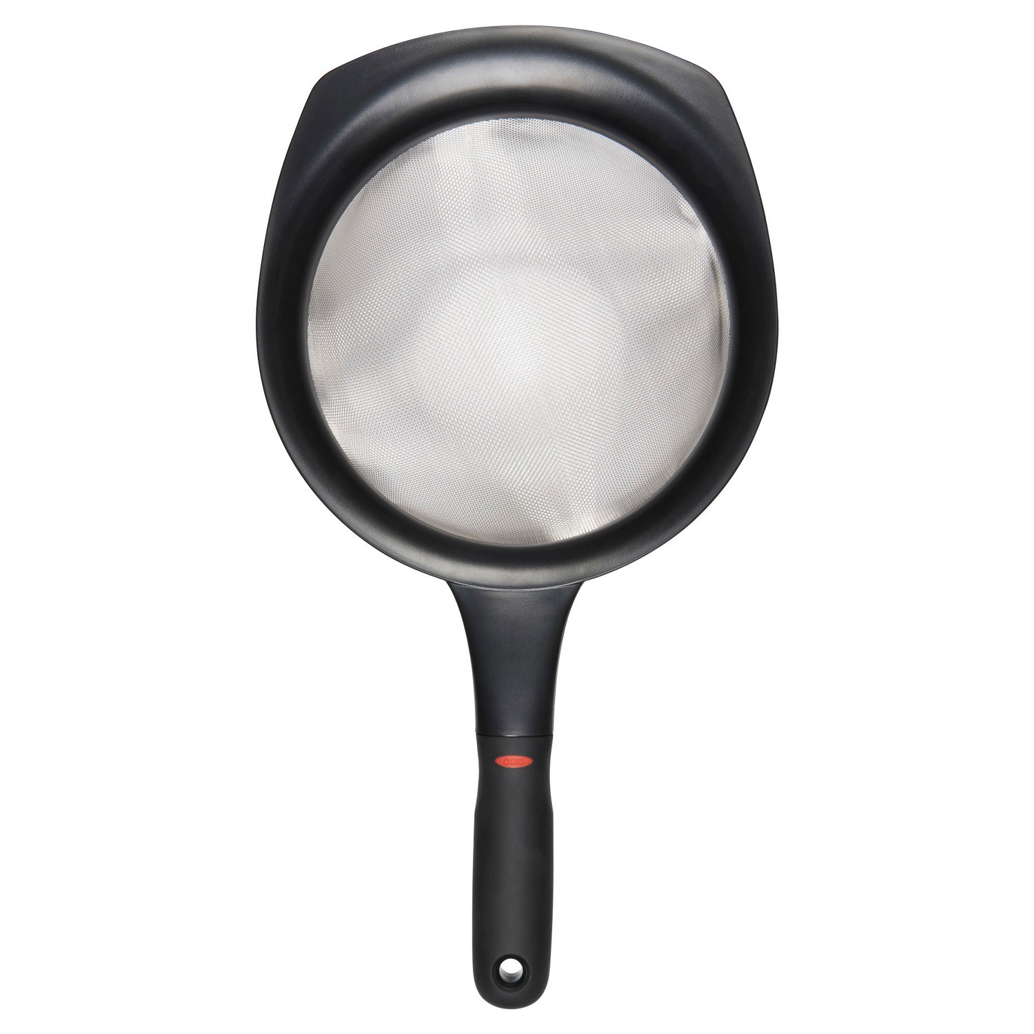 OXO 8" Strainer: Stainless Steel Fine Mesh, Non-Slip Grip, Dishwasher-Safe, Large Hand Sifter for Baking & Rice