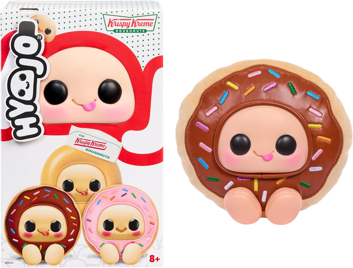 Hyojo Krispy Kreme Doughnuts Series, Blind Box Collectible Plush, Limited Edition Toy Gift for All Ages, 3 to Collect, Chocolate & Strawberry Iced, and Original Glazed with a Signature Hat