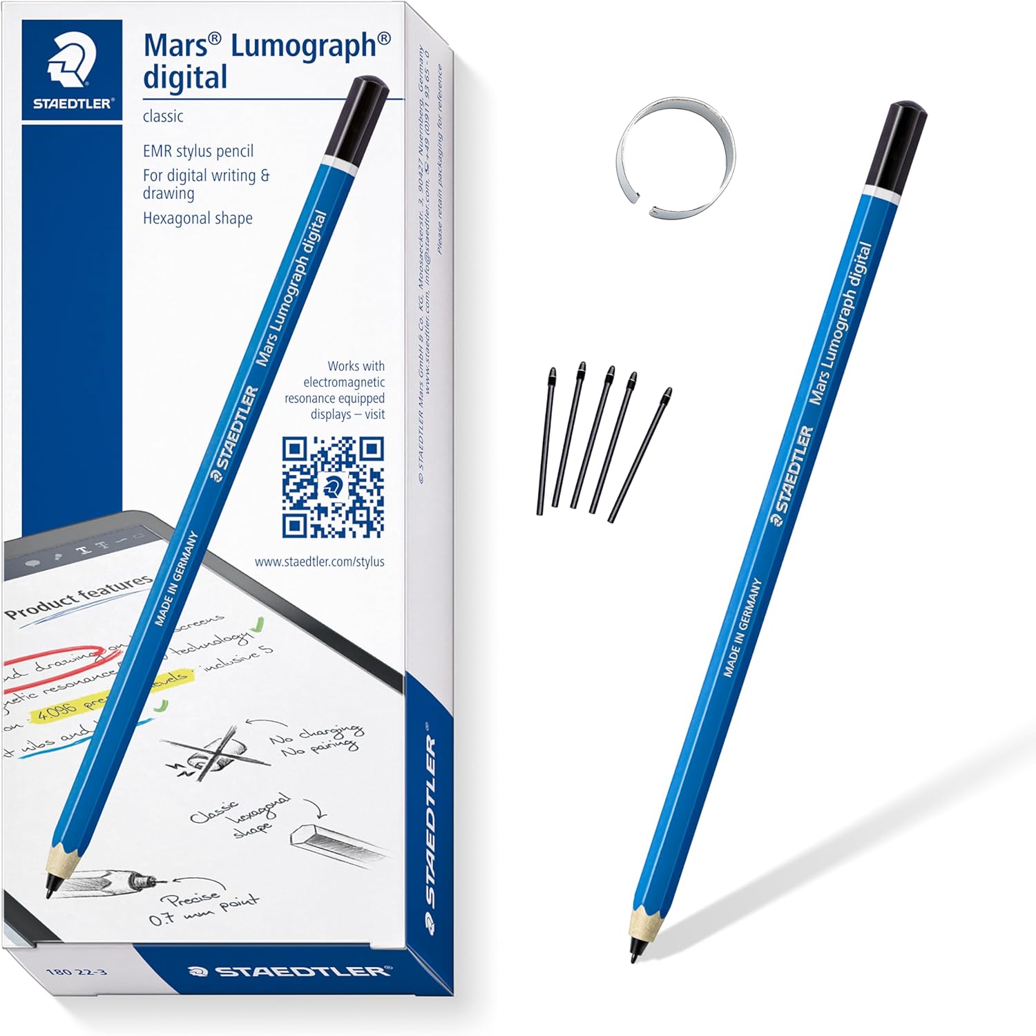 Mars Lumograph Classic Digital Stylus Pen: No Charging, EMR Palm Rejection, 4.096 Pressure Levels, Hexagonal Shape, Natural Writing and Drawing on Touchscreen Tablet, Laptop, Phone