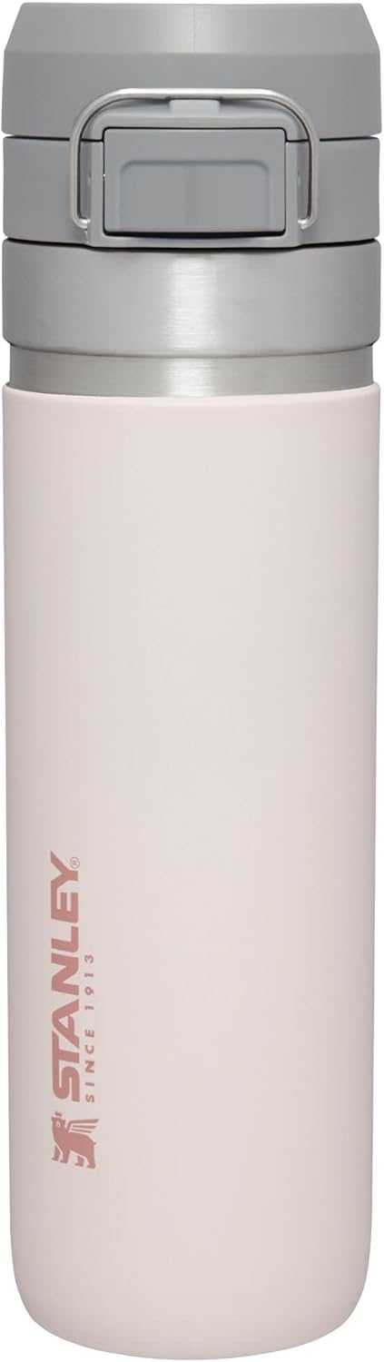 Quick Flip GO Water Bottle 24 oz | Push Button Lid | Leakproof and Packable for Travel and Sports | Insulated Stainless Steel | BPA-Free | Rose Quartz