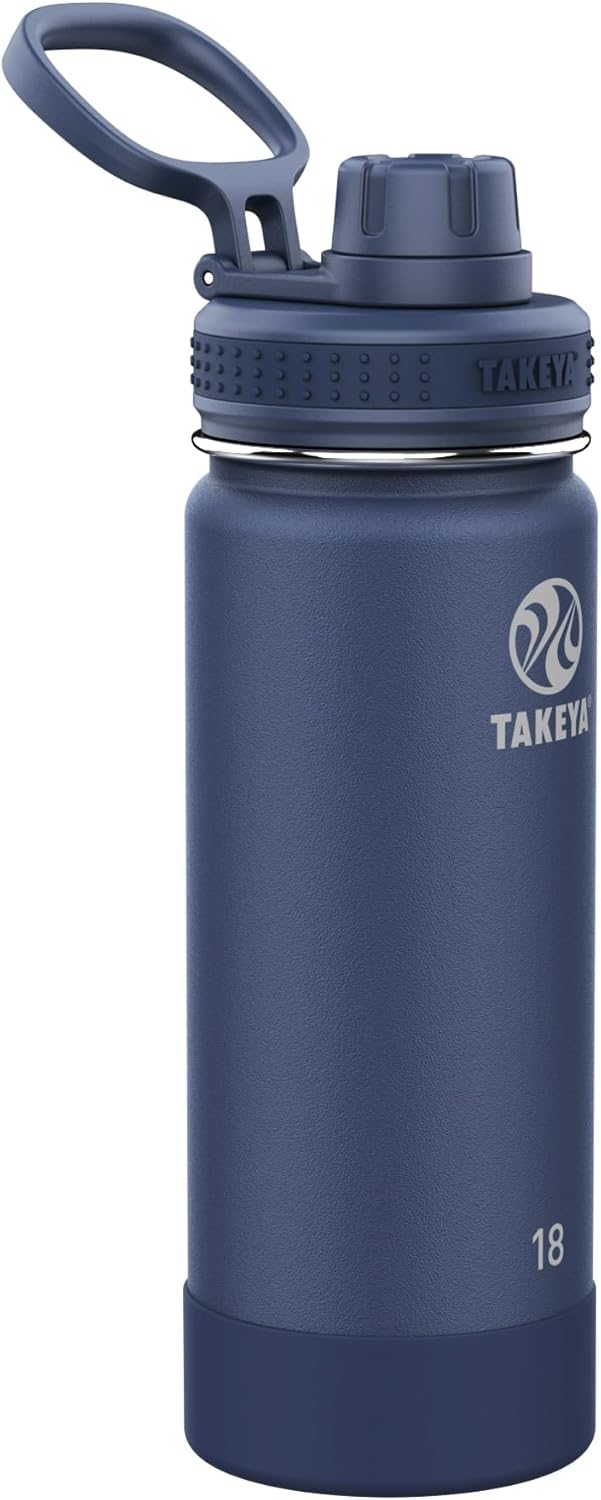 Actives Stainless Steel Water Bottle, Insulated Spout Lid, Keeps Drinks Cold 24 Hrs, Leakproof, Durable, Dishwasher Safe, Ideal for Gym, Travel, Fits Most Cup Holders, 18 oz/Midnight Blue